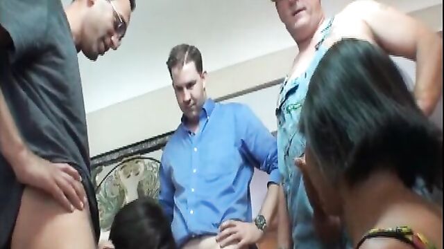 Description:When milf Tina cant pay the handyman for his services, she comes up with a payment plan of her own. By inviting his wife over to swap. The swinging milfs stroke three big boners until there are all creamed with cum. Suffice it to say she did not need to pay back the handyman.