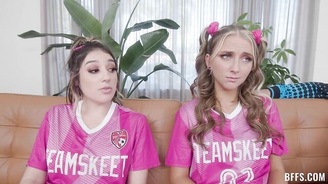 Description:Soccer girls Freya, Macy, and Violet are hot for Sergeant Miles, their new coach. At the field, they goof around, flashing their boobs and teasing each other. After soccer practice, the three best friends invite the coach to watch the first USA soccer game against Wales in Qatar’s World Cup together. But things start to get hot and heavy when the game starts because the lusty gals compete for the love of the coach to try and win the captain spot of the soccer team. After separately sucking his cock when the other two are not watching, they realize the only solution is to get completely naked and put their pussies to his service.