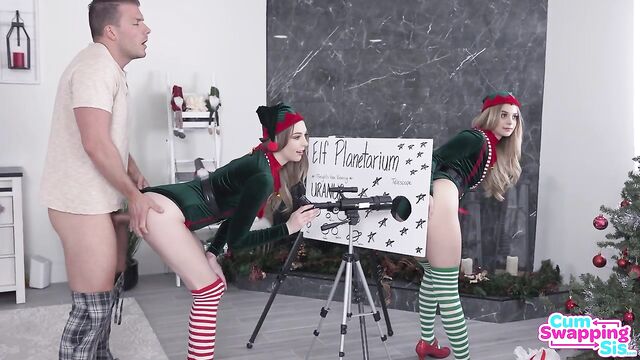 Description:Lily Larimar and Molly Little are fucking with Molly's stepbrother Codey Steele by pretending to be elves frozen in various positions. They want Codey's cum, so they first try to get him to jack off into some clingwrap on the toilet. Then they put together some free elf pussy for him. When Codey finds an elf planetarium that shows off Molly's anus through a telescope, he's had enough. He decides to have some fun.Pulling Lily's elf costume aside, Codey shoves it in as she does her best to hold her pose and the moan. Picking Lily up, Codey moves her out of the way so he can slide on home into Molly's snatch. Then he moves both girls to the couch and opens their mouths so he can face fuck Lily and then Molly. When Codey flips Molly onto her back so he can fuck her, he also puts Lily onto her knees so he can eat her ass and finger her puss.Next Codey puts Lily on her knees and gives it to her in doggy as he fingers Molly's smooth fuck hole. As Codey gets closer to cumming, he lays the girls down on their backs side by side. He gives it to Molly first, then moves on over to Lily. When Codey is ready to blow his load, he gives the cum to Lily as he nuts in her mouth. Lily comes back to life and shares the cum with Molly, who also comes to life. The girls tell Codey his cum is magical and now he's responsible for fucking them every day.