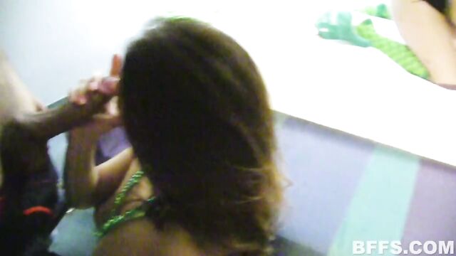 Description:The reason I like St. Patricks Day so much is because it's super easy to get laid due to the plethora amount of crazy sluts roaming the streets that day. Today, we have a submission from some BFFs who were determined to get laid on St. patricks Day. After a load of partying in public, these out of town sluts pick up some random dudes and take them back to the hotel room! No fucking ! Why hasn't this ever happened to me? Anyway back at the hotel room, these chicks get down to business and seduce the fuck out of the 2 lucky dudes they picked up! It's was an all out fuck fest on St. Pattys!