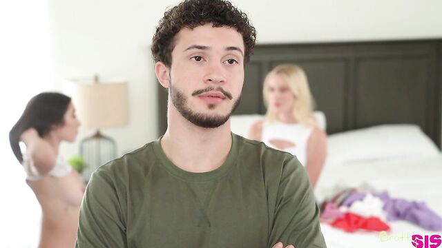 Description:Apollo Banks has a new stepsister in Amber Summer. She and her friend Skyler Storm are hanging out in their bedroom looking at lingerie while Amber texts with her stepdad to try to get into his pants. When she gets a resounding no from her stepdaddy, she calls Apollo in. She's decided that if Apollo's dad has a nice dick, his son must too. She wants it.Making Apollo turn around, Amber changes into sheer lingerie. Then she and Skyler approach him and drop to their knees. They pop Apollo's stiffie out and coo between themselves about how nice it is. When they take turns sucking, Apollo knows he's definitely getting some.Amber lays down on the bed and spreads her thighs so Apollo can slide on home. Meanwhile, Skyler climbs on top of Amber's face to ride her tongue. Amber lets Skyler have a go riding Apollo's fuck stick in cowgirl and then reverse cowgirl. When it's her turn again, Amber gets on her knees so her stepbro can pound her in doggy as she resumes eating her BFF out. When Apollo pulls out, he manages to blow his load all over Amber's ass and Skylar's face, leaving a mess to be licked up and snowballed by the two coeds.