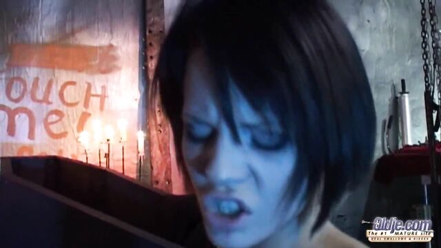 Description:Spooky things happen when you mess with a young girls that loves pranks. She plays with the old man's heart, scaring him like hell. The room might be cold, be she is very hot. Inside and outside. Her pussy needs to be cooled off because she is boiling inside. A good hard cock, some kissing and some blowjob is what this bitch Gothic girl needs to calm down. Girl on top, spooning, this is what she loves, sex is her thing. His junk enters slowly in her mount and she is blowing him , watching him in the eyes. Cum on her face becomes the supreme satisfaction!