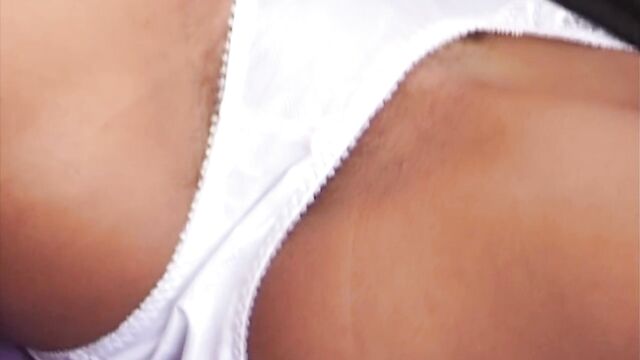 Description:Brigitta is a very sexy brunette who is sitting in the middle of the bed when she pulls her dress up and starts to rub her hairy pussy through her white panties. After masturbating alone with just her fingers, he gives her a hard sex toy to fuck with while he films everything with the camera.