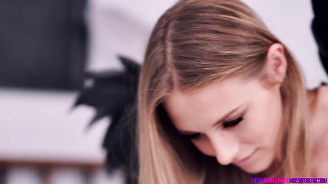 Description:What would you do if you had a stunner of a stepsister like Kyler Quinn who finally gives in to her bad side and insists on fucking you? Jay Romero is about to find out. Kyler Quinn has faced the proverbial angel and demon on her shoulders and has decided to go ahead with the bad Kyler's advice. The titillation of mom and dad not knowing that Kyler is sucking her stepbrother Jay Romero's cock every night is too much for Kyler to resist. As Kyler guides Jay to the bedroom, he realizes that he's in for the ride of his life.Shoving Jay onto the bed, Kyler pops his stiffie out. She lifts her miniskirt to show that she's not wearing anything under her dress. After gliding her slick pussy lips over Jay's hardon, she wastes no more time in sliding down until he is buried deep in her tight twat. Sucking her own thumb, Kyler rocks her hips to ride Jay's dick. As she keeps the party going, Kyler's inner devil comes out to enjoy the feeling of delightful naughtiness from her stepbro's dick. Then she rolls onto her back and locks eyes with Jay as he slides back inside to dominate her from above just the way she wants it.Rolling onto her belly, Kyler shakes her rump as Jay continues to give it to her. Her moans of satisfaction are deep and long. Jay even brings her to the point of sexual bliss that she must bite the bedsheets to contain herself. As soon as Jay has given her the climax she knows she deserves, Kyler gives him some satisfaction in return. Turning around, she lets her inner devil ride her as she lays on her belly sucking Jay's cock. Jay finally gives in to his baser urges and nuts all over Kyler's face just like she has begged him to do.