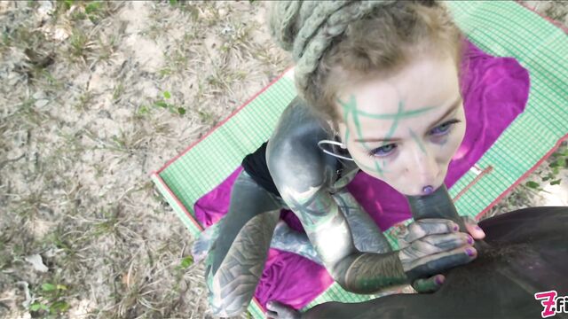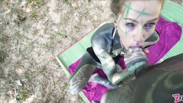 Description:Heavily tattooed couple Anuskatzz and Lily Lu went for a naughty picnic in thai jungle. Anuskatzz first starts with touching herself, fingering and stretching her pussy and asshole. After She sucks Lily's dick while watching around if someone is coming. Lily then fucks her anal in doggystyle and cowgirl position, sometimes pulling his dick out and showing us her gapeing asshole all is finished with a facial cumshot for Anuskatzz.-- CAMERA: Lily Lu-- PRODUCTION STUDIO: Z-Filmz