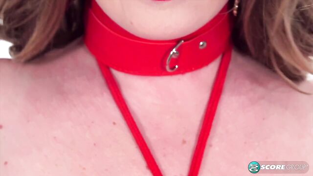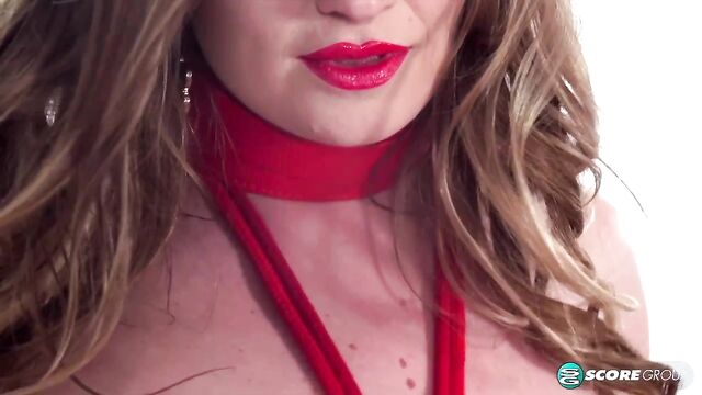 Descrizione: Lingerie-clad Maria Body plays with her image in this fetish-oriented scene, wearing a restraint collar and cuffs. She's fit to be tied with red rope. There's also a red whip in the mix plus oil that Maria rubs all over her chest.