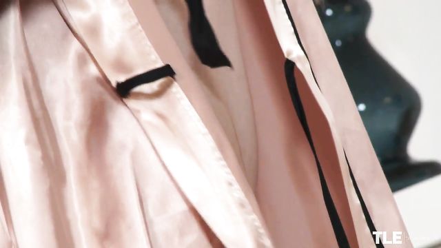 Description:Gorgeous Leyla Fiore stars in this slice of fetish erotica by actress and model-turned-director Sandra Shine. A stunning Russian babe with brown eyes and waist-length golden-brunette hair, tattoos, nude makeup and full, glossed lips, Leyla is home alone. The scene has a ritualistic quality as, dressed in a pastel-peach satin robe, she stands in front of a large mirror draped with black-lace lingerie. Reverently, she takes a stocking and slips a hand inside, relishing the silky feel of the sheer fabric.