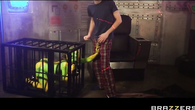 Description:With a keen eye for sexual deviance, The Collector (Eva Parcker) travels the universe in search of raunchy specimens to abduct. Of course Danny D, with his famous schlong, is chosen to represent Earth's male population. In a flash of light he finds himself in a spaceship with his dick between the bars of a cage, sucked by a horny alien on a leash (Tiffany Doll). Her skin may be green but her pussy's still pink, so Danny takes the plunge and fucks her 'til she screams. To test his worthiness, the horny alien and The Collector team up to take on Danny's dick. From then on it's out one hole and in another. Pussy, mouth, or asshole these extra-terrestrials don't care where it goes; they just want that cock bad!
