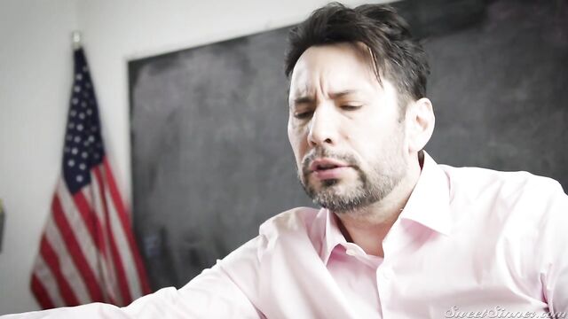 Description:Marilyn and Rob at Alex’s persuasion, Marilyn goes to her professor’s classroom and refuses to take no for an answer. Throwing him back on the desk Marilyn grabs his cock through his pants and shows him how good of a slut she can be.