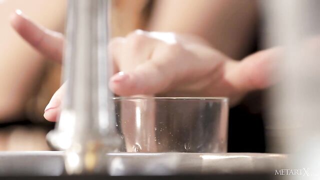 Descrizione: After sexy blonde Zazie takes a drink and destroys a break-up letter from her lover, she sets about consoling herself with some solo lust action. As the hot Hungarian honey rubs one of her erect nipples with an ice cube, it causes her arousal level to rise, so she fondles her beautiful, firm breasts while simultaneously stroking between the legs. She slips off her panties, bends over the dining table, slides a hand between her thighs, and frigs her shaved pussy frantically. Facing front, she bends backward over the table and resumes her wild finger play, moaning with pleasure as she races towards an almighty climax.