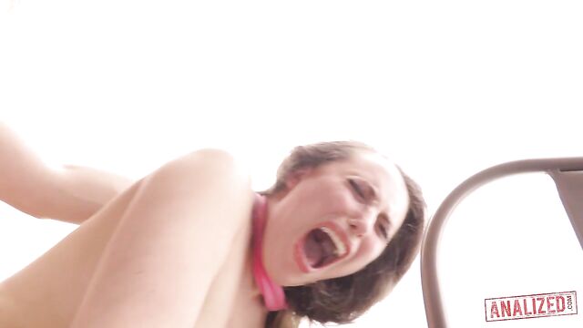 Description:Beautiful brunette babe Casey Calvert poses by a metal fence. She is wearing Pop Art-designed pants. She shows off her perky tits and bubble butt to the camera. She presses her boobs against the metal fence as she sexily waves her ass back and forth. Casey pulls down her pants to show her voluptuous butt and tight pussy. James Deen enters the scene. He pulls her closer to him. James gets down on his knees. He spreads her butt cheeks with his hands then buries his face into her ass. The king of rough sex is just getting started. He slaps, spanks, spits and chokes Casey’s little body. Being roughed up only made Casey hornier. She spreads her legs wide as James shoves his hard dick deep into her asshole Casey can feel his dick stretching out her little butthole. James uses her headband as a gag. He continues to pound her hard in the pooper. Each thrust is deeper and faster than the previous one. His dick is churning the insides of her anal cavity. Casey can’t help but moan in pleasure. James pulls out his cock from her ass and shows the camera her gaping hole. James pushes her down. He lets her suck his cock again. He grabs her by the hair then shoves his cock deep into her throat. Casey gags loudly as James buries his whole cock in her mouth. She continues to suck his cock before James bends her down on the table. They fuck doggystyle on the table. He keeps on pounding her from behind. Her cute bubble butt bounces lightly as he slides his cock in an out her pussy. Casey screams loudly as she cums on his cock. The combination of impact play, asphyxiation, and anal penetration is too much for Casey. She is beginning to lose her mind as their rough sex becomes more intense. James enjoys her tight asshole in different positions. They keep fucking each other until James feels like he is cumming. He pulls out his dick from her cunt then strokes it in front of her. James shoots his warm cum to her pretty face.