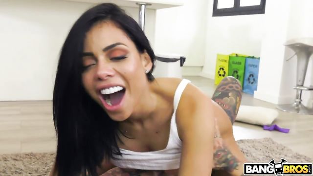 Description:The house is a fucking mess after the shoot so we called the service to clean up. Canela and her big latin ass showed up. The leggins she was wearing could barely hold in those phat cheeks. As she was cleaning, she came across some thongs and a huge dildo that were laying around. She wasn't bothered by this at all. Instead, it looked like she was turned on. After some initial flirting, I talked her into cleaning without the leggins for an extra $100 and she agreed. I think she likes showing that bubble booty every chance she gets. After she played with the dildo, she was ready for the real thing. My pants were already down and she got to cleaning my shaft and balls real good. I had to get some of that ass, so she turned around and my dick went right up her tight asshole. She moaned, screamed, and even squirted as I plowed that ass over and over. She was paid for her efforts with a load in her mouth and pretty face.